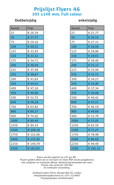Hieronder vindt u verschillende prijslijsten voor flyers.